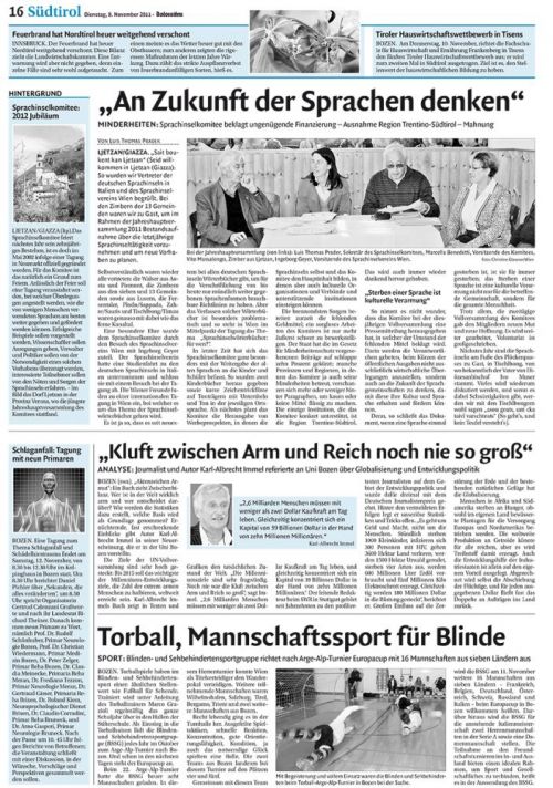 An Zukunft der Sprachen denken - Beitrag von Luis Thomas Prader in "Dolomiten" om 08.11.11