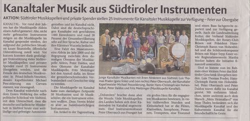 Kanaltaler Musik aus Südtiroler Instrumenten - Beitrag in "Dolomiten" vom 24.09.12
