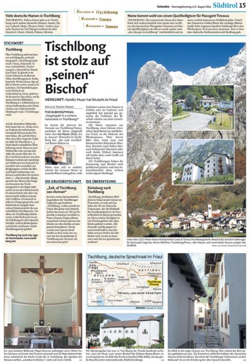 Tischlbong ist stolz auf "seinen" Bischof - Beitrag von Luis Thomas Prader in "Dolomiten" vom 06./07.08.11